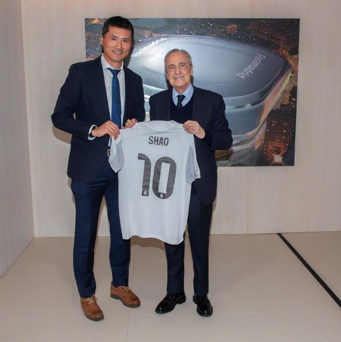 国足主帅邵佳一到访皇马,与弗洛伦蒂诺会面并互赠球衣