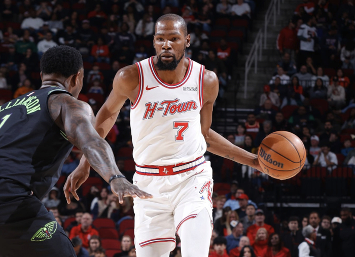 首节比赛,火箭开局实现多点开花,前5次得分分别来自场上5名不同球员,杜兰特造成锡安犯规2罚1中,取得个人全场首次得分。杜兰特展示中远距离投射威胁,个人连得5分,率领火箭打出17-6的进攻压制,成功拉开分差到双位数。