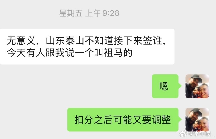 李平康社媒晒聊天记录照片⬇️